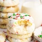 You get the best spread and 'crinkling' on the Christmas ooey gooey cookies by baking these as-written below, but you can freeze them after baking very well! Let them cool completely, and then freeze flat. You will lose some of the powdered sugar, but they're still pretty! Defrost at room temperature before serving.