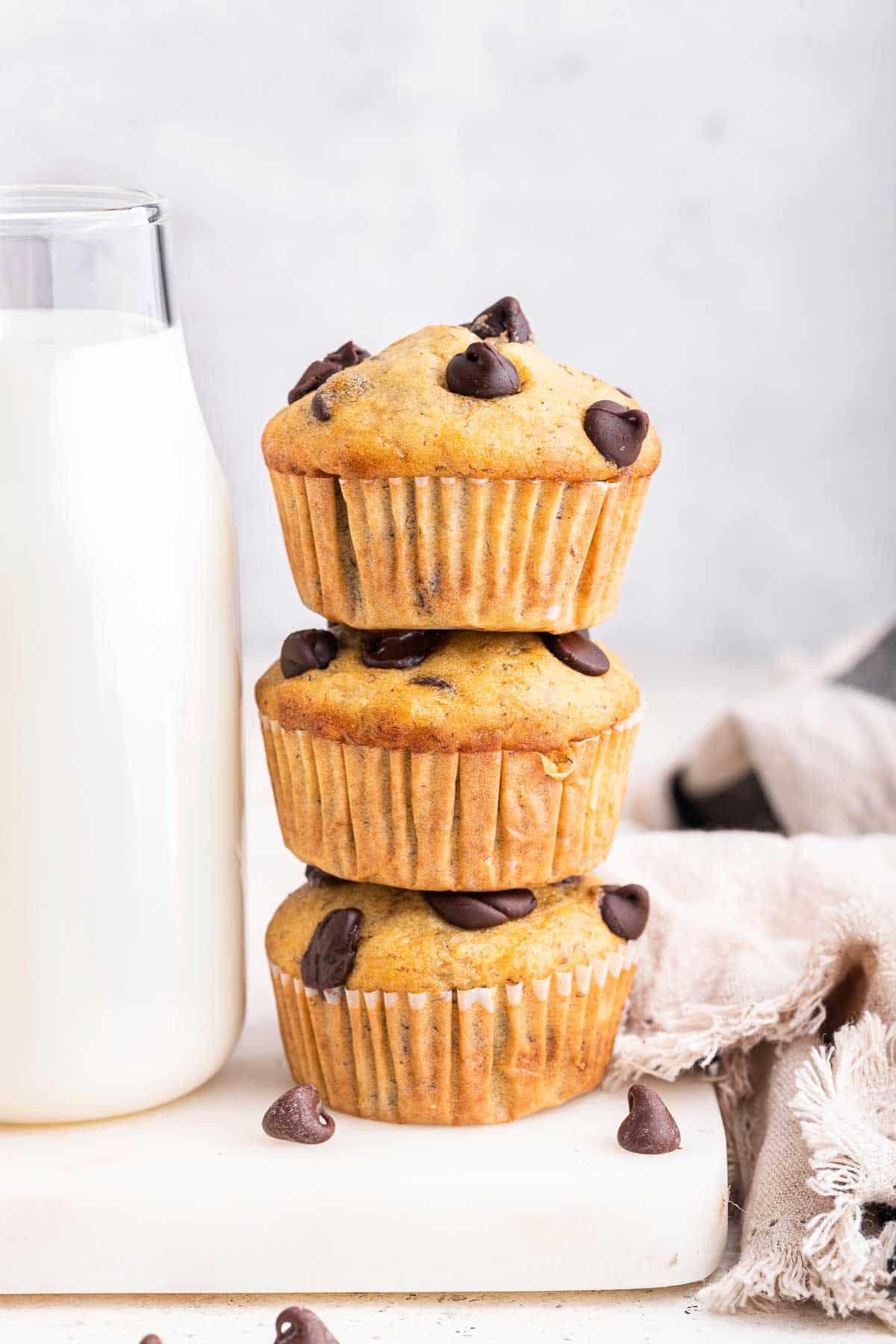 I almost always have all of these ingredients on hand, which means I can have banana chocolate chip muffins anytime! Any chocolate chips are fine hereโdark, semisweet, milk or even white chocolate chips! If youโre low on chocolate chips, chop up a 3 ounce chocolate bar.
