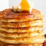 This is how Iโve been making pancakes for years, so I know this recipe is a winner. Sometimes I use oil instead of butter to save on calories and they still come out nice and fluffy. When I have leftover eggnog from the holidays, I use that instead of buttermilk and add a little ground nutmeg and that works great, too. This is our favorite recipe for pancakes โ yum!