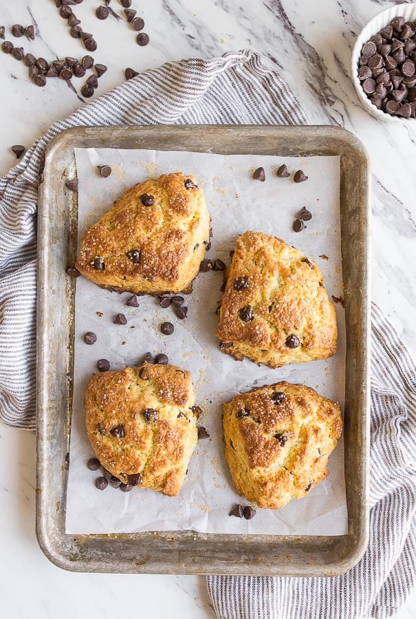 4. If youโre up for it, these chocolate chip scones are great with the zest of 1 orange stirred in. Then, use the juice of half an orange to make a powdered sugar glaze, if you wish!
