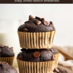 Do you have one banana languishing on the counter and need a sweet use for it? Iโm here with a small batch of Chocolate Banana Muffins as a fun way to use it up! This small recipe makes 6 muffins, but you can easily double it to make one dozen.