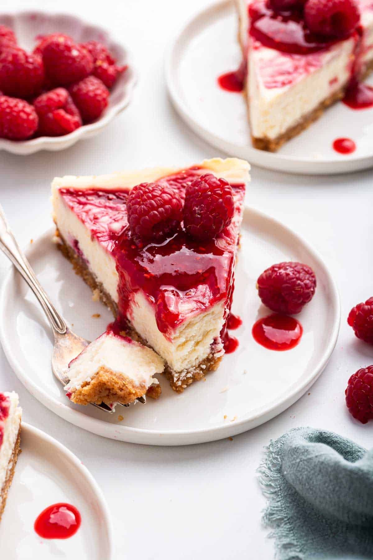 - Vanilla Extract. Half a teaspoon of vanilla extract flavors the cheesecake and enhances the raspberry flavor.