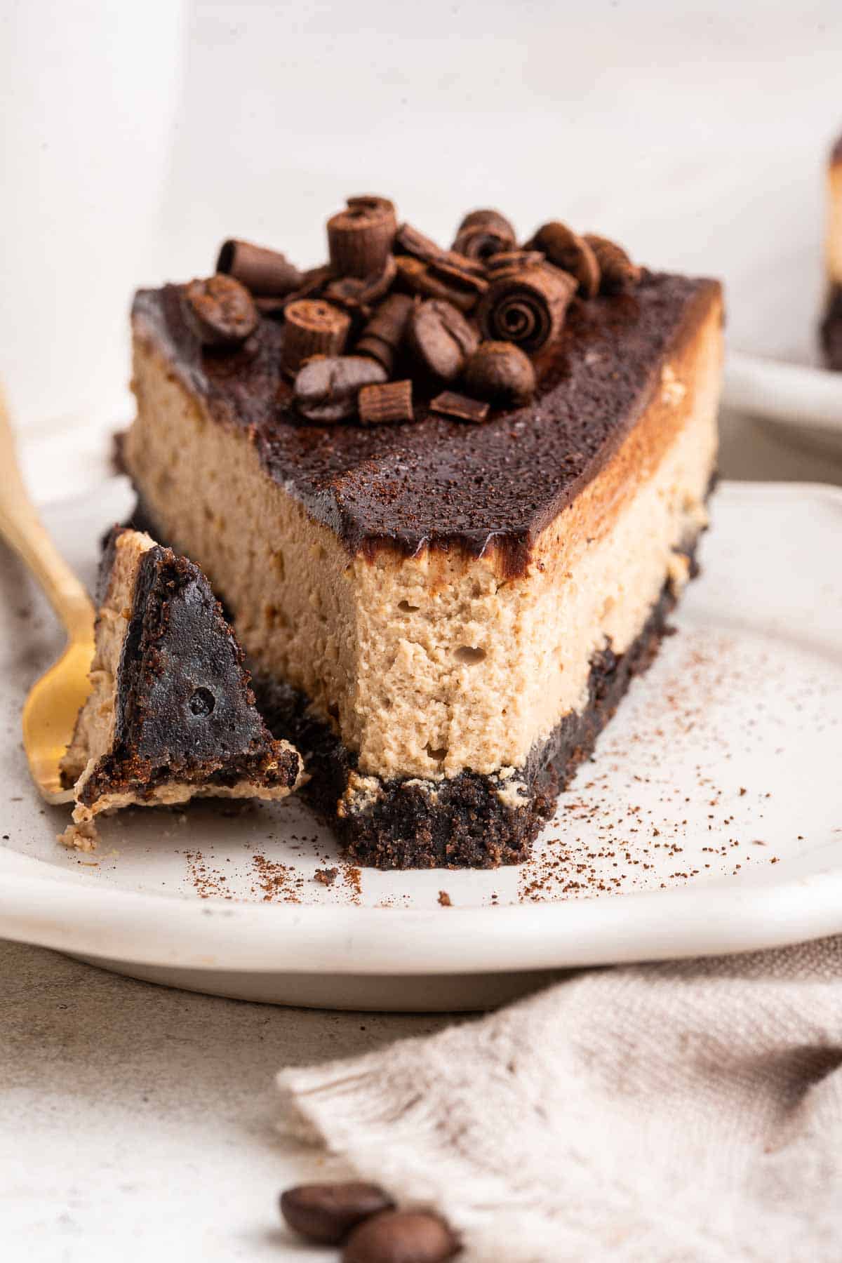 Creamy baked coffee cheesecake made without a water bath. Just needs instant espresso powder for flavoring!