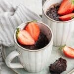 The recipe makes 2 mug cakes, one for you and one for your date. ย I really wish microwave chocolate cakes would replace nightcaps after dates, donโt you? If you like my mini chocolate cakes for two, you will like this even faster version.