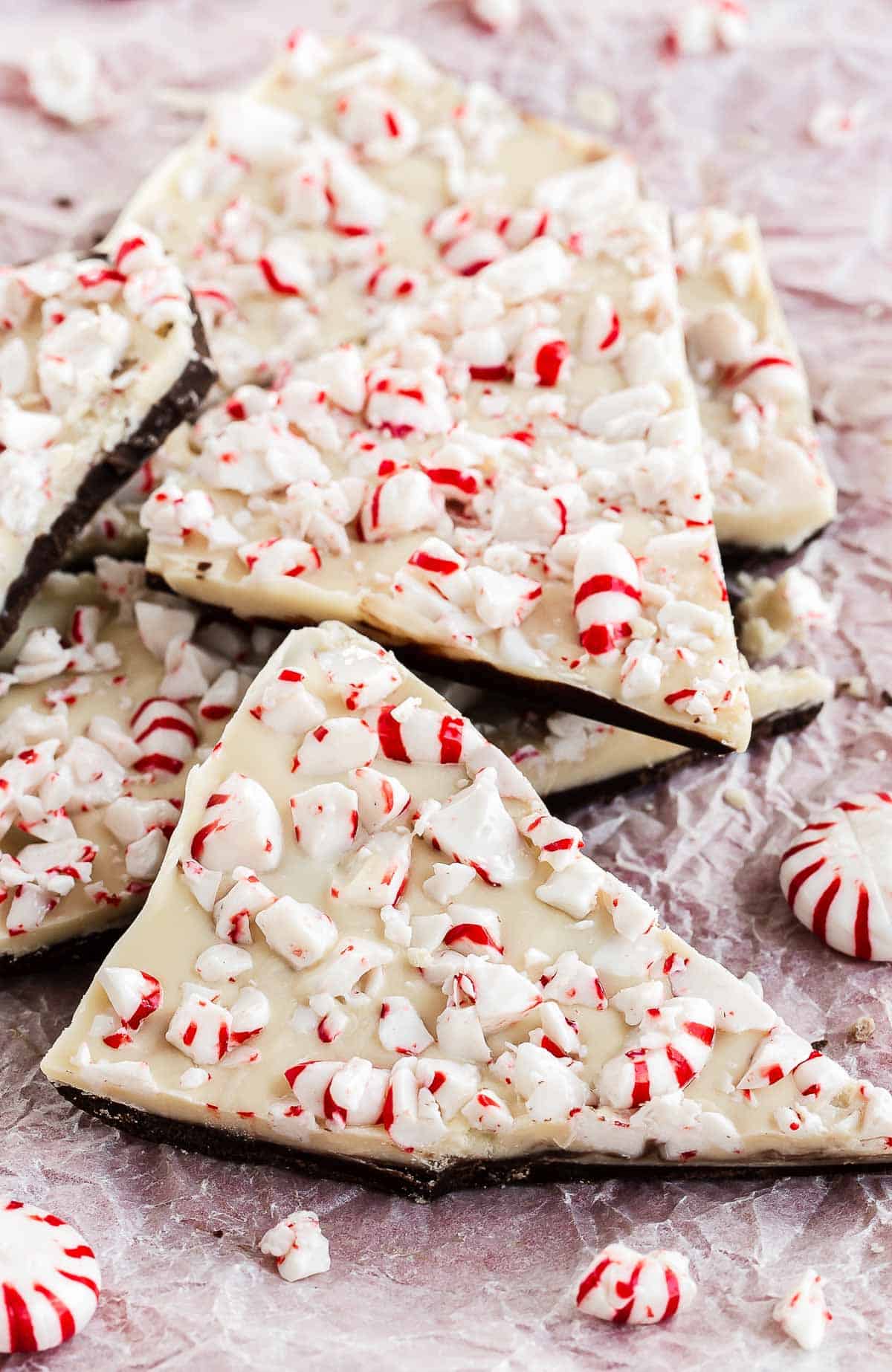 While I try not to play favorites and give equal love to my Oreo balls and my easy fudge recipe during the holidays, itโs two layers of melted chocolate topped with crushed candy canes that wins my heart every time. Letโs not forget the time I made Chocolate Tiramisu and layered pieces of peppermint bark under the chocolate ladyfingers and white chocolate mascarpone cream. (Itโs exactly as delicious as it sounds!)