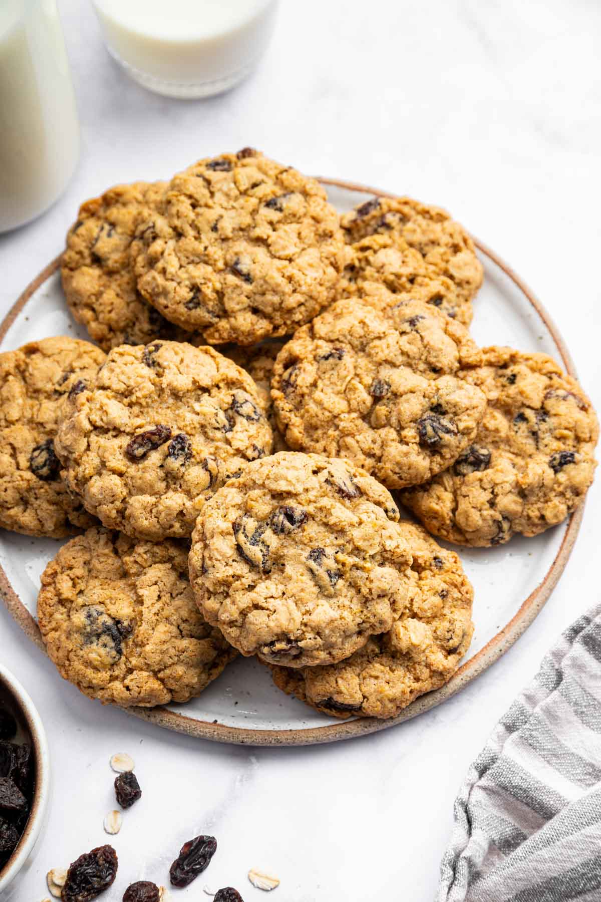 This might be an unpopular opinion, but I donโt recommend freezing this dough for a few reasons. Over time, oats absorb moisture (and turn into oatmeal, you know), and so during freezing, the moisture content of this dough changes drastically. If you want to try this anyway, I recommend *not* baking them from frozen. Defrost them fully before baking. Also, I noticed in my own experiments that the raisins became slightly tougher in the final baked good after some time in the freezer. So, itโs truly best to bake these cookies right away.