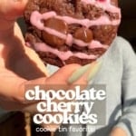These chocolate cookies are soft and chewy (with crisp edges, of course!), but theyโre also packed with chocolate chips and cherries! The maraschino cherry juice glaze on top makes them the most cherry-flavored chocolate cherry cookies ever! Itโs a fine balance to not let the flavor of chocolate overtake the cherry flavor here, but we did it!