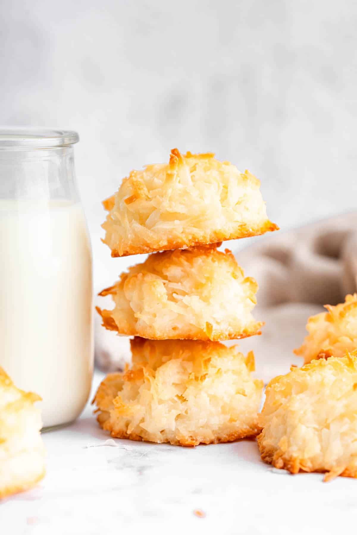- Good coconut macaroons should be golden brown and crispy on all sides, especially the bottom. Avoid all-white macaroons at all costs! If you see one that is white after baking, itโs usually because theyโre made with condensed milk. Itโs not that I donโt love condensed milk in my Tres Leches cake, but in my opinion, it doesnโt belong in thees cookies. It makes them soggy and prohibits browning, and we want that toasted coconut flavor!