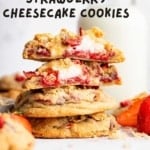 Weโre not choosing between two dessertsโweโre baking one inside the other and eating both! These Strawberry Cheesecake Cookies are stuffed with tangy cream cheese filling, packed with freeze-dried strawberries, and topped with graham cracker crumbs.