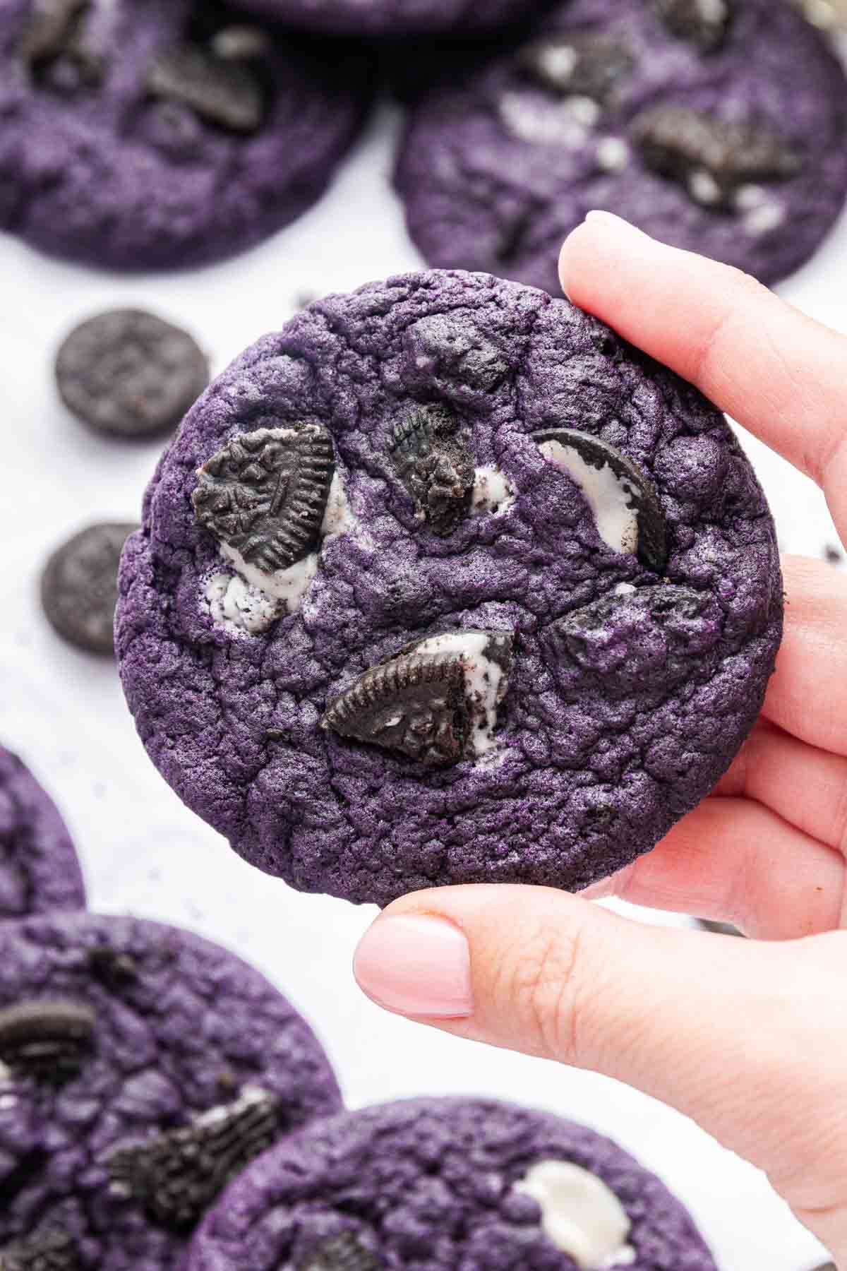 If youโve never enjoyed this sweet vanilla-like yam from the Philippines, you are missing out! Let your first introduction to ube be this small batch ube cookies recipe. Itโs based on my classic sugar cookie recipe but with Oreos and ube flavoring!
