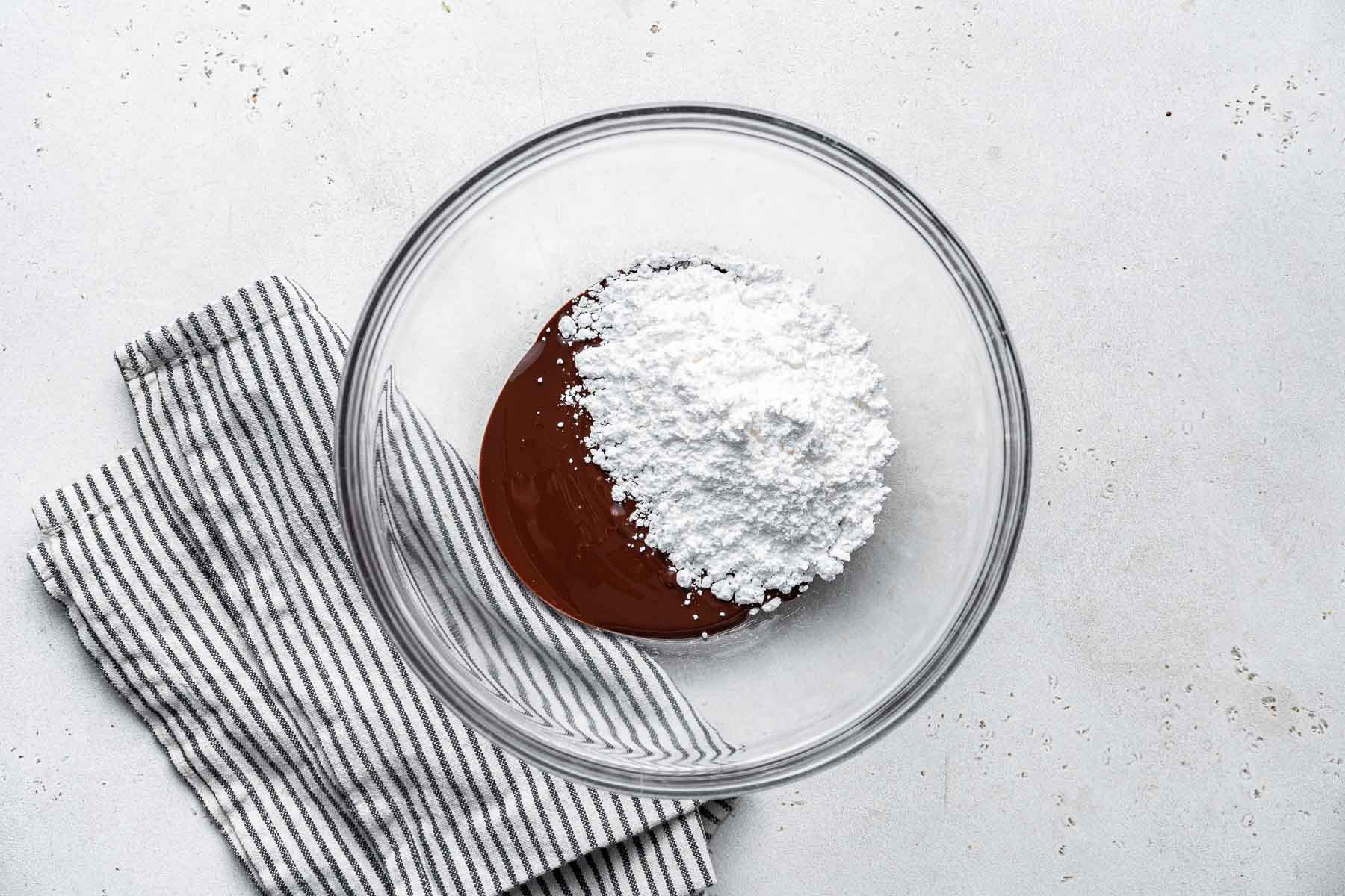 Once the chocolate is fully melted and no longer has any lumps, stir in the powdered sugar.