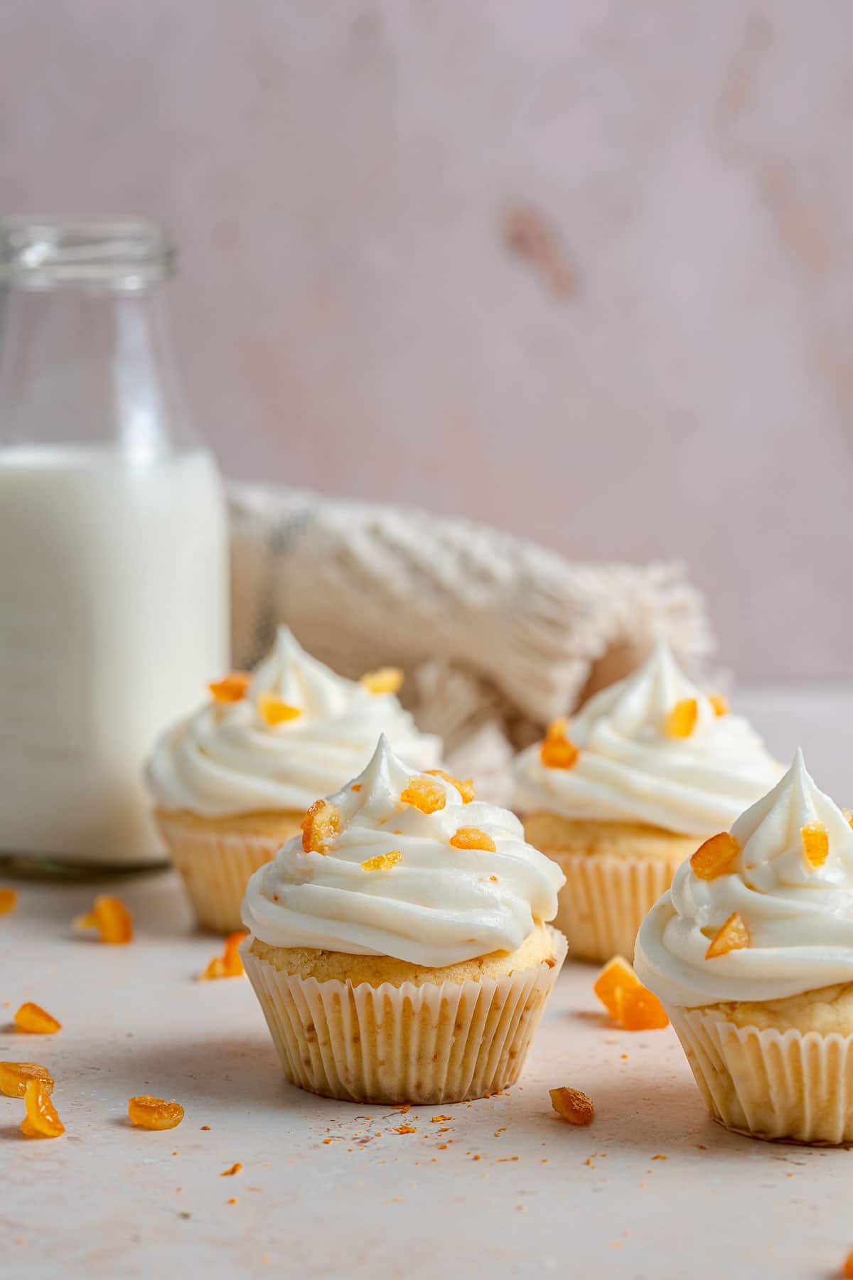 - Finally, add the orange zest and and beat until creamy. Frost the cooled cupcakes and decorate with candied orange peel, if you like.