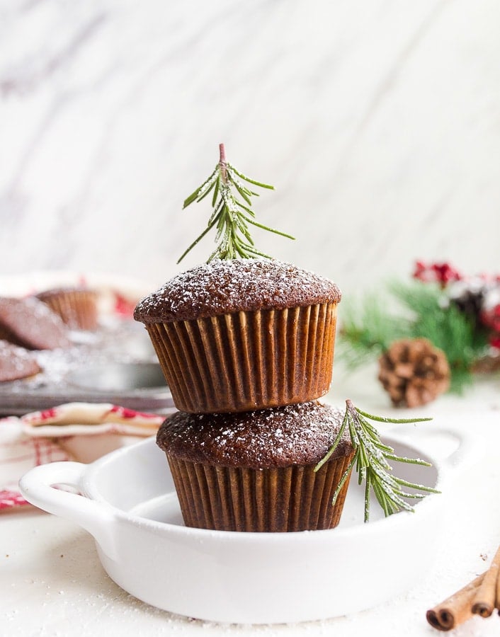 The smell of gingerbread muffins baking in the oven is the scent of the holidays in my house. These muffins are what I make for breakfast when Iโm craving gingerbread, but I have another recipe for my dessert cravings. My cast iron skillet gingerbread cookies for two is my nighttime option. You will love both!