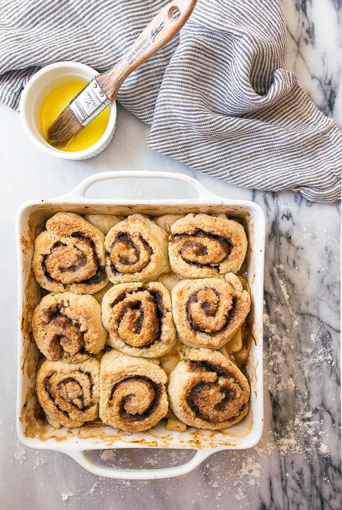 Making this for the 2nd time; in the oven now. Truly a perfect combo of sweet/tart baked apples + deliciously doughy cinnamon rolls. Iโm a big fan of Dessert for Two and have made many of the cupcakes + other tasty treats. The recipes are always reliable if slightly larger in terms of batch number than predicted. This one made 14 rolls that fit in the 8โณ round pan I used, with 3 minis left over. Note: the filling runs thin as stated. You might want to make a Tbsp more than whatโs called for to accommodate extra dough. I bake exclusively gluten free and swap out 1-to-1 for flours. I used Bobโs Red Mill for this one. Iโm usually loathe (nearly pathological) to roll out dough as the mess never seems worthwhile, yet this cobbler dough is SO forgiving! It holds together effectively and requires very little flour to keep from sticking = happy me! I usually cut back on sugar, too, but for this one used whatโs called for. Didnโt grate a final apple but otherwise stuck to the recipe. Itโs easy to feel accomplished after following all the (easy) steps with a delicious result at the end. Thank you!