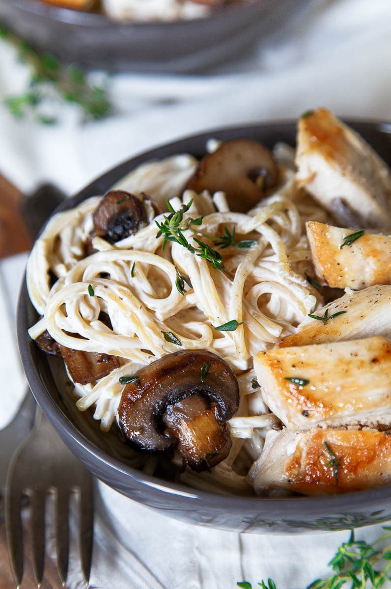 Oh, and if youโre not a mushroom fan, itโs okay; you can leave them out. I really think they create an amazing pan sauce here, but you can do whatever you like. Just make the creamy pasta portion and the chicken, ok?