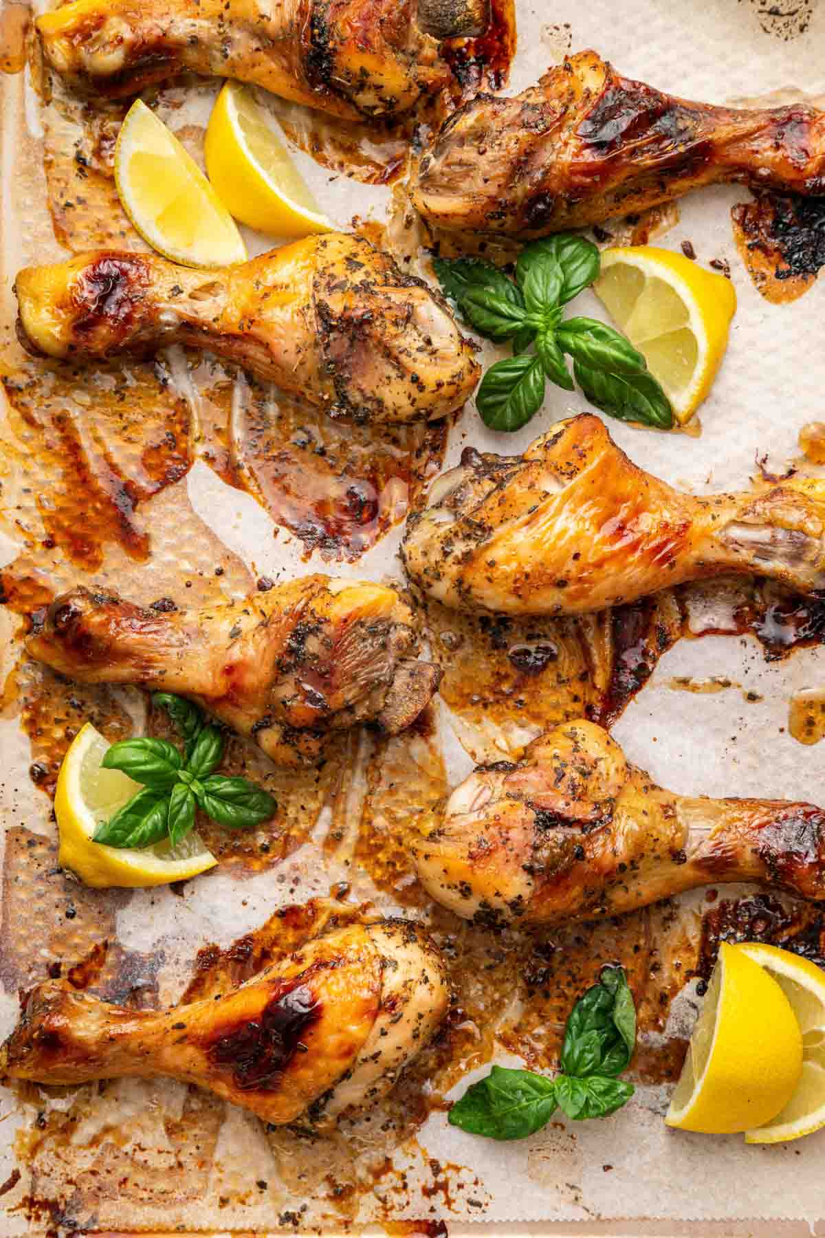 Rachael loves balsamic vinegar, and so I became obsessed too. Specifically, when she combined it with honey and basil, I fell in love. The simple flavor combination never left me, and itโs still my go-to marinade for chicken drumsticks, even after all these years.