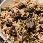 When I want the flavors of an all-day cooked meal but do not have the time, this is the one-pot meal I make. My Beef and Noodles recipe is so easy and simple, and youโll love that everything comes together in one pot! Meltingly soft beef stew meat gives pot roast vibes, and the flavorful cooking juices are absorbed by the noodles. This will be your new favorite comfort food meal!