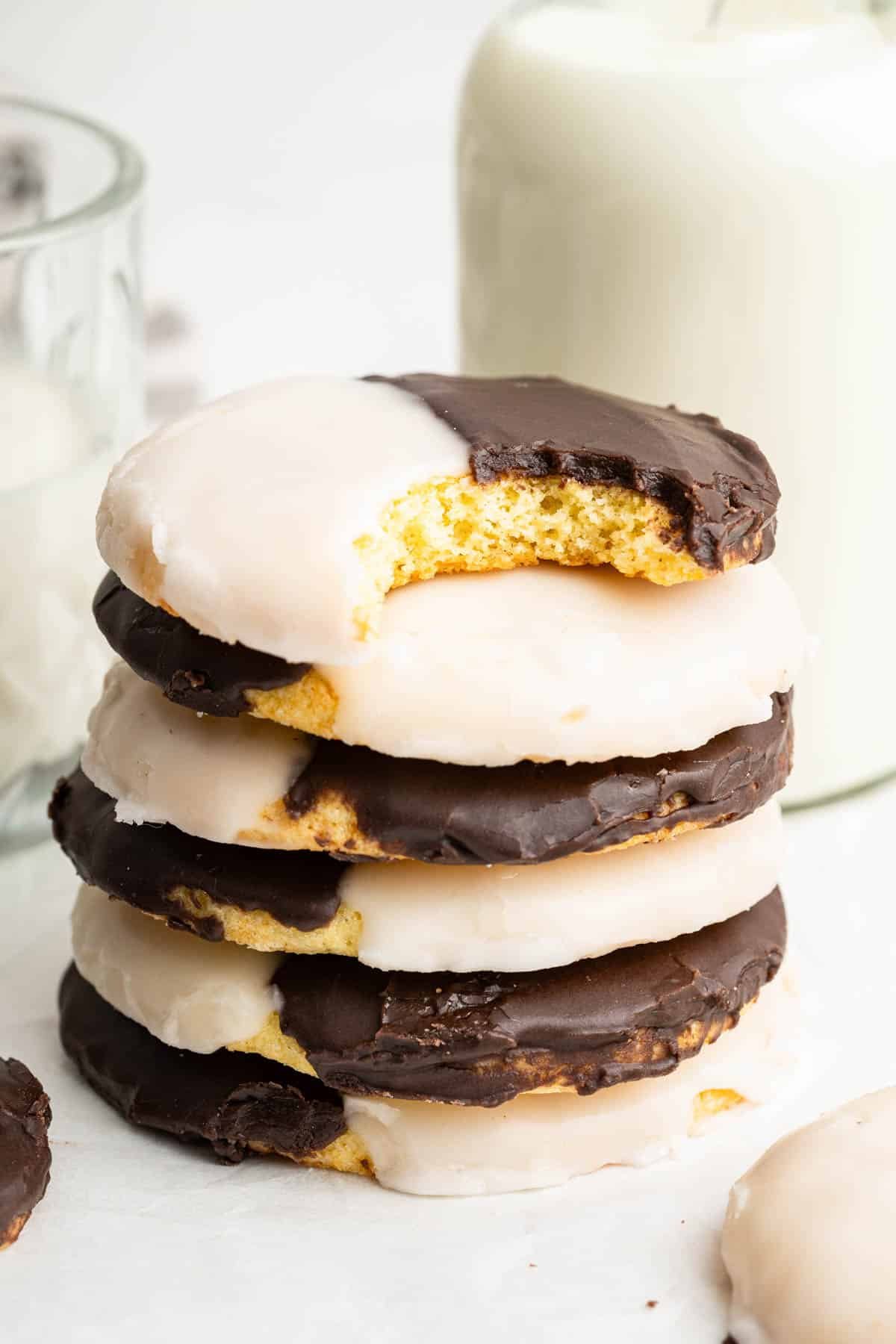 A small batch of classic New York black and white cookies.