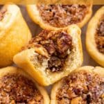 Pecan tassies are cream cheese cookie dough cups stuffed with chewy, sweet pecan centers. They taste just like a mini bite of pecan pieโheavenly! One of my favoriteย Southern holiday cookies!